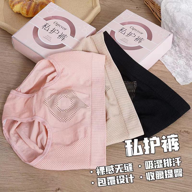 新款私護(hù)褲磁療無痕吸濕透氣中腰褲 提臂收腹干爽舒適暖宮內(nèi)褲女
